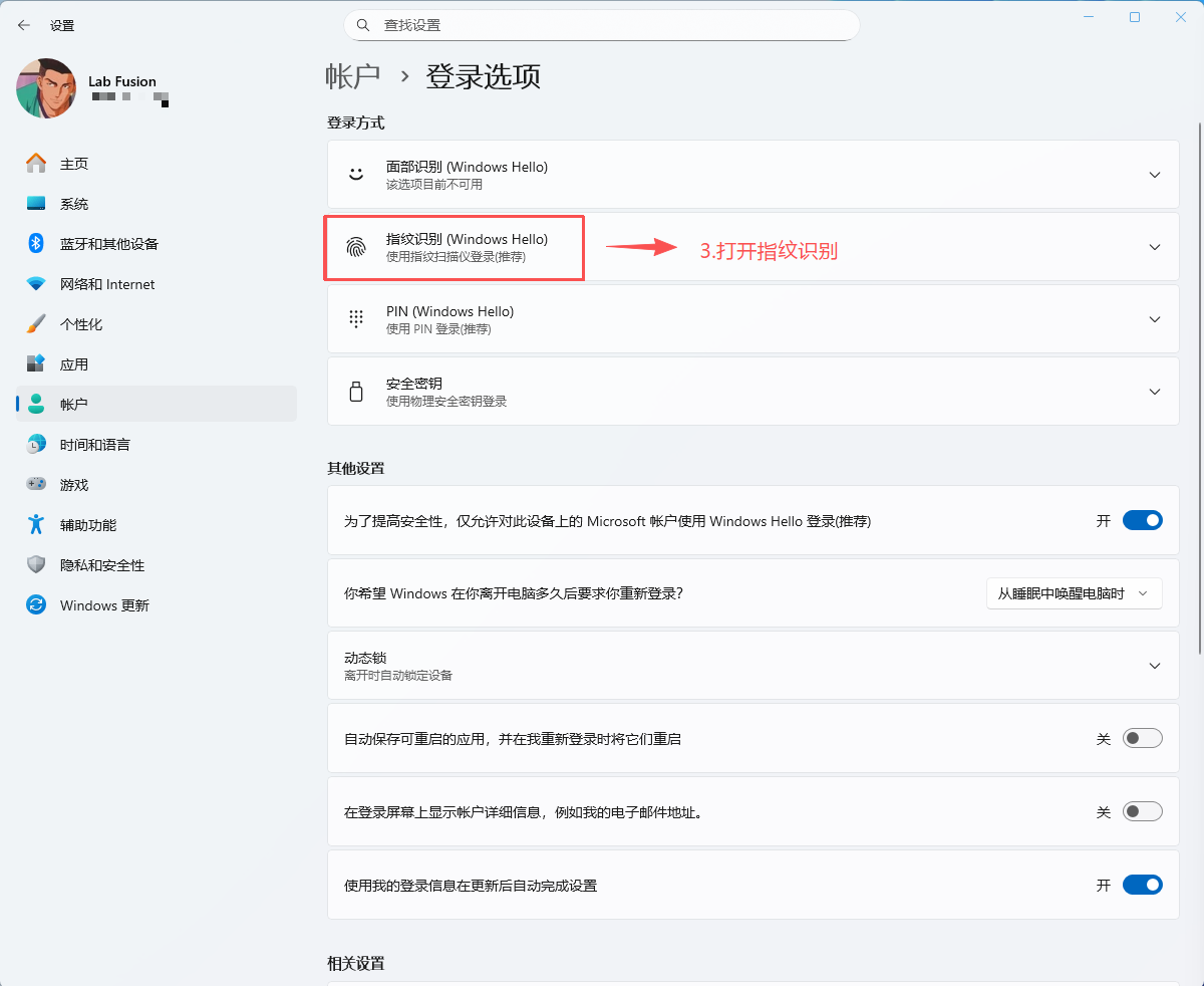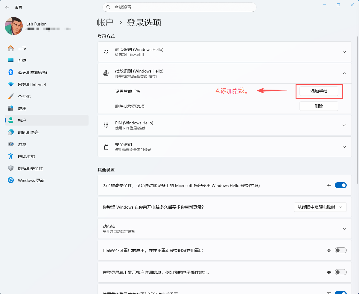 - 指纹解锁一旦设定后,键盘必须时刻与电脑进行连接,在电脑开机的状态下不得断开,一旦断开后,电脑会删除指纹设置,再插上就需要重新设置指纹。